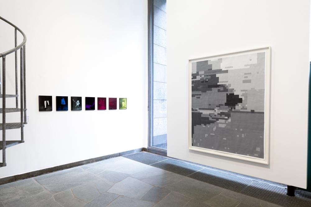 In this solo exhibition, Parrotta shows Discrete Channel with Noise #11 #12, two large-scale paintings with their source material (gridded photographs) and The Colour of Class, seven black and white images, glazed with Boothian coloured glass.