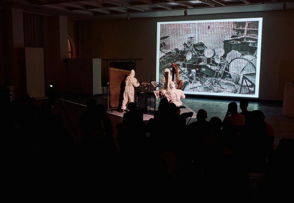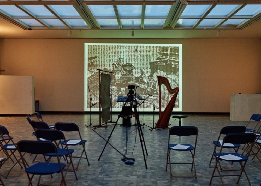 The philosopher Vilém Flusser was one of the first to anticipate the advancement of the internet and networked culture dominated by the technical and electronic photographic image. In the last chapter of his ‘Into the Universe of Technical Images’, Flusser describes his vision of chamber music as the paradigmatic tool for ‘dialogic communication in general, and for telematic communication in particular’. Artist Clare Strand builds on her engagement with the transmission and circulation of a photograph. Her recent work ‘Discrete Channel with Noise’ used a coded system of numbers 1 to 10 as monochrome tonal values to transmit and duplicate an image from sender to receiver without the use of the internet. Stand has taken this photographic code and invited chamber musicians from the Royal Conservatoire of Antwerp to ‘play a photograph’. Each musician individually interpreted the number code, playing a notated sound for each number, each working autonomously but also as a group through gesture, intuition and feedback. Each time the photograph is performed new information is output. Without conductor and linearity, the musical sender and receivers operate in ‘telematic dialogue’, guided by a set of musical rules only to be built upon and replaced with new musical scores and understandings.